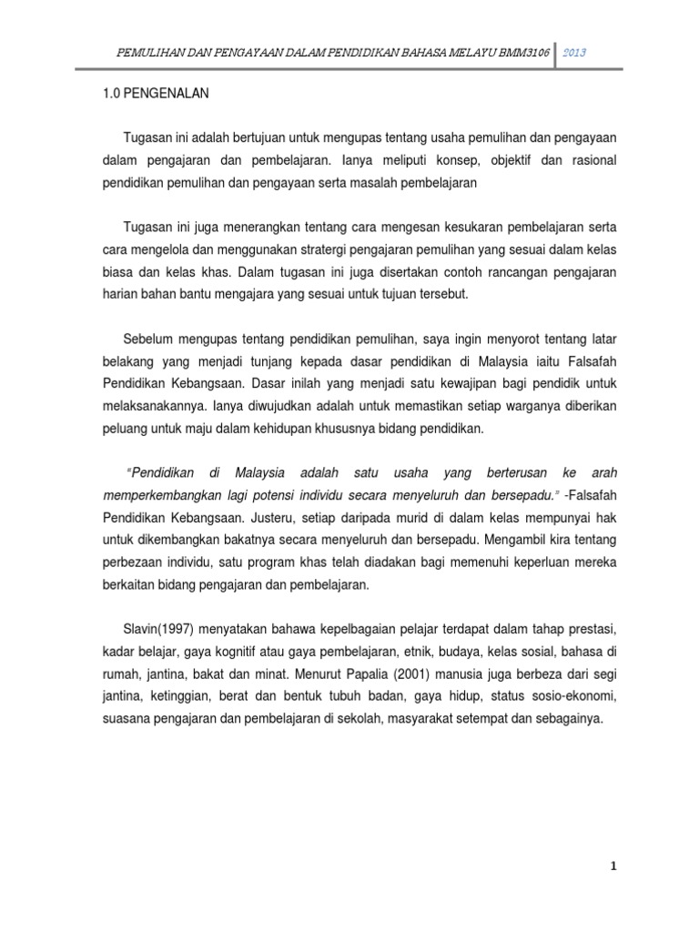 Tugasan Pemulihan Dan Pengayaan Pdf
